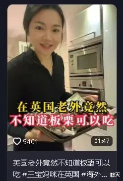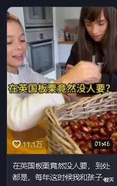 今天刷到一个住在英国的中国宝妈的视频,她拍到英国的板栗掉在地上没一个英国人理,后来她就仔细观察,结果发现没有一个英国人知道这玩意是可以吃的!